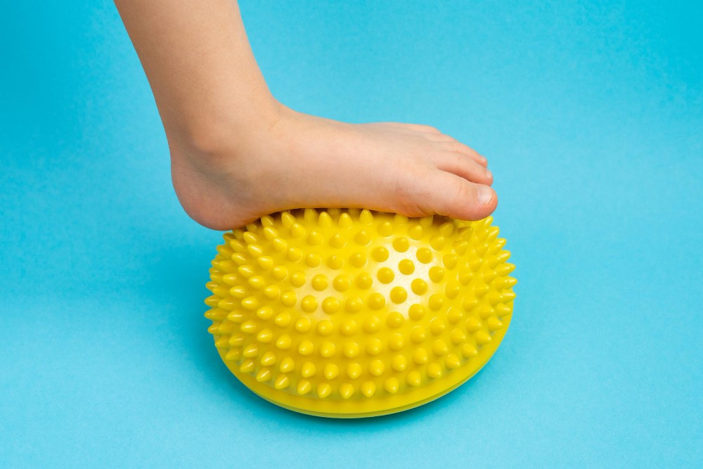 Każda półkula ma na wierzchu specjalne wypustki, które pobudzają receptory czuciowe w stopach i poprawiają ukrwienie skóry.