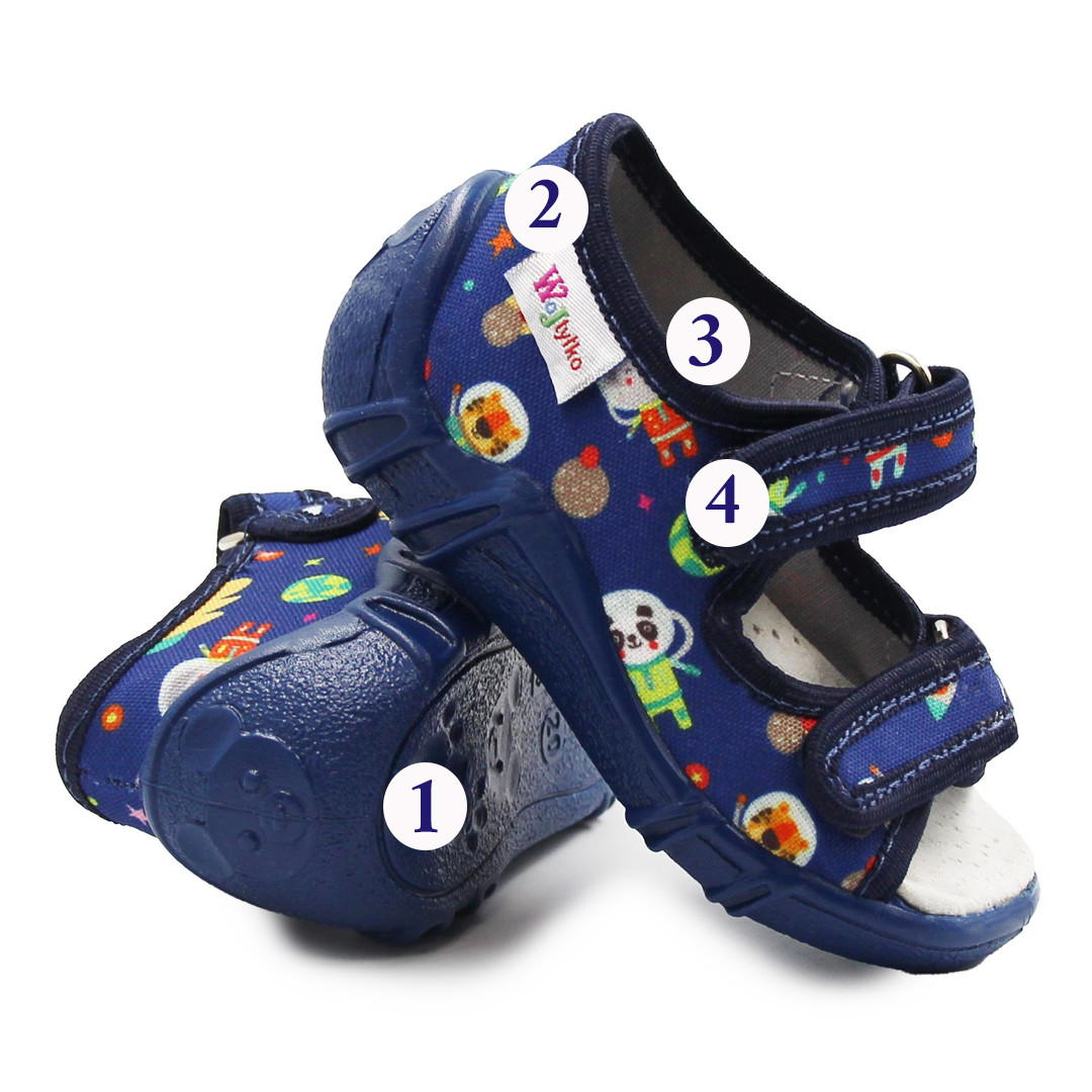 1. Podeszwa jest lekka i elastyczna oraz posiada dziurki, które zapewniają dobrą wentylację i tym samym zapobiegają nadmiernej potliwości stóp dziecka.