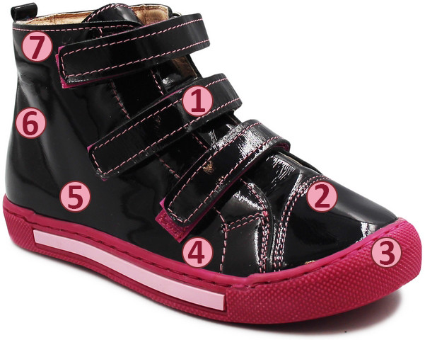 6. Wysoki usztywniony zapiętek - pomaga utrzymać stopę dziecka w prawidłowym ułożeniu