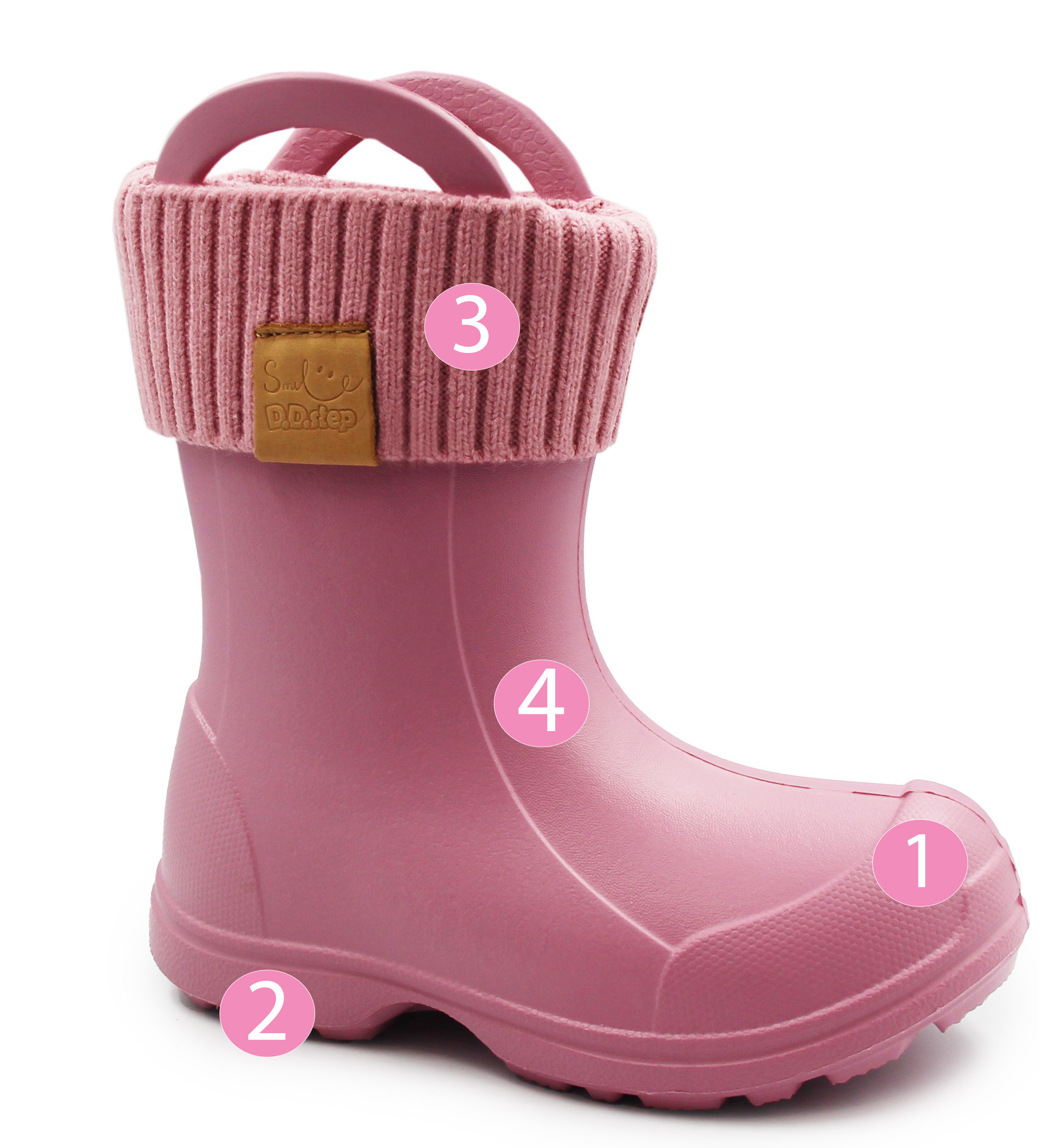 Urocze kalosze dziecięce to buciki na cieplejsze oraz chłodniejsze deszczowe dni. Wnętrze otulone jest bawełnianym polarem, przypominającego w kształcie skarpetkę, dzięki temu że można go wyjąć kalosze sprawdzą się podczas różnych pór roku.