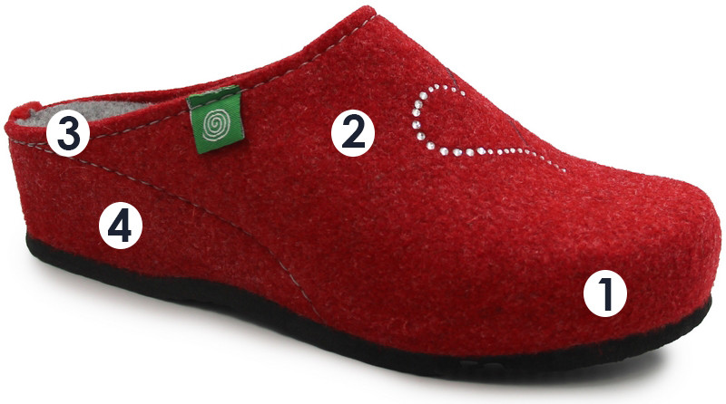3️⃣ Wkładka wykonana z filcu z dodatkiem wełny, dzięki czemu w kapciach jest zachowany odpowiedni mikroklimat, dodatkowo wkładka jest ukształtowana anatomicznie dla komfortu nóg