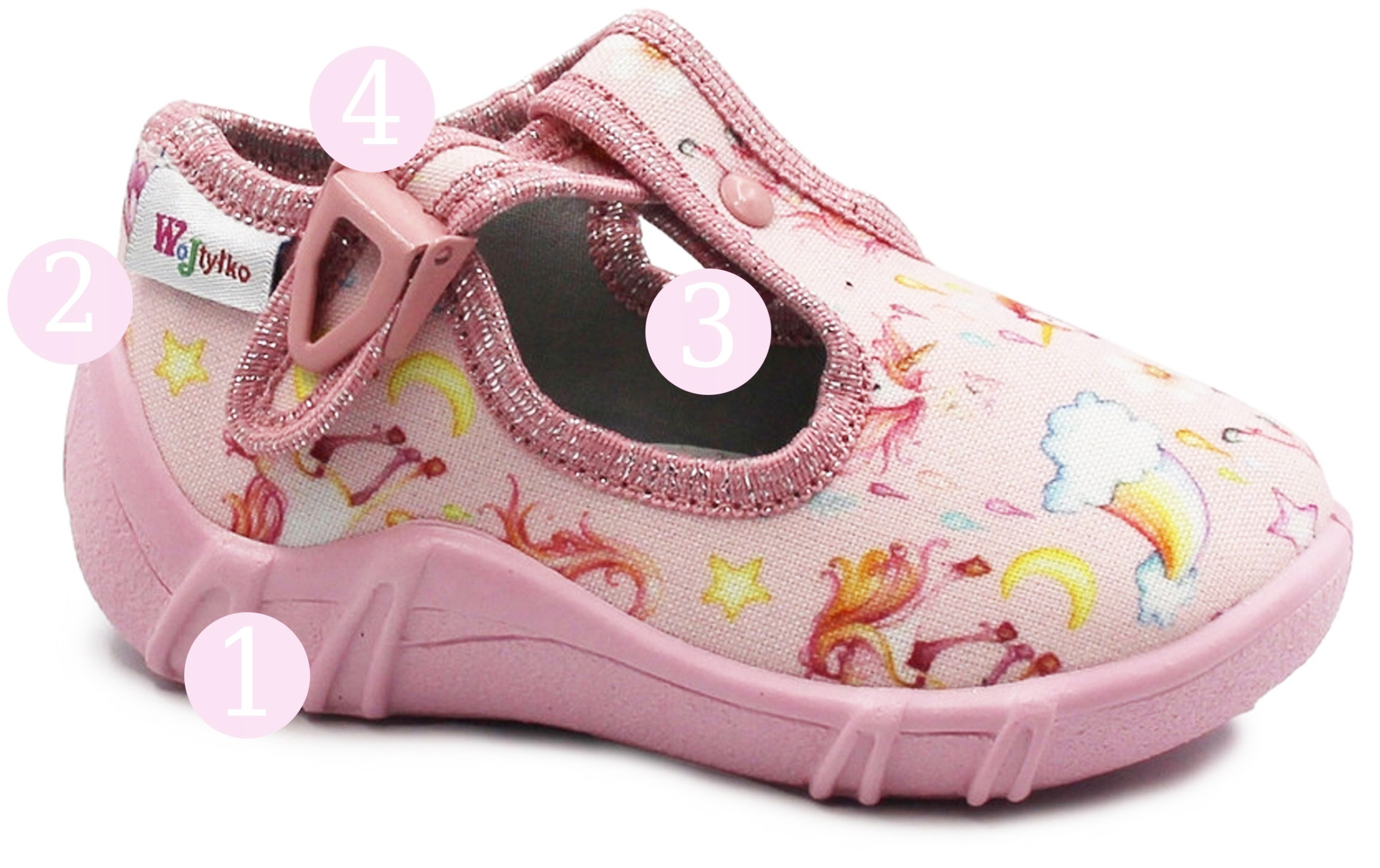 Kapcie do przedszkola dla dziewczynki Wojtyłko Zuzia różowe w jednorożce