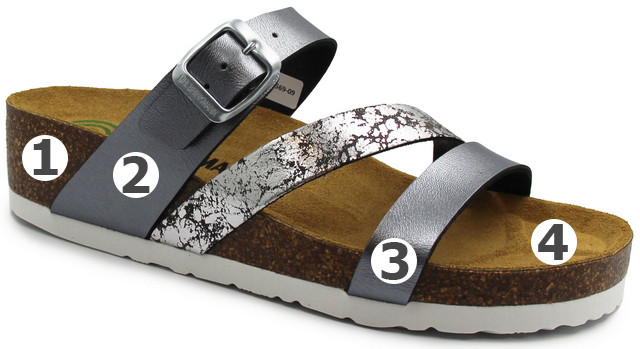 Wkładka ma anatomiczny kształt co zapewnia dobrą amortyzację wstrząsów, utrzymuje stopę we właściwej pozycji i równomiernie rozkłada ciężar ciała; zewnętrzna warstwa to naturalna skóra zamszowa stwarza to optymalny mikroklimat dla stopy.