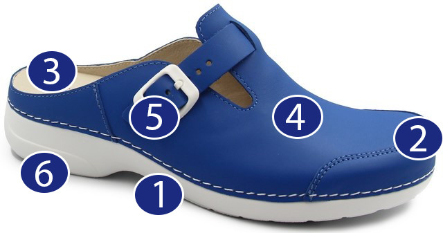 Posiadają bardzo dobrze wyprofilowane wkładki wymienne przystosowane do prania. Wyprofilowanie sprawia, że obuwie dobrze trzyma się na nodze i zapewnia wysoki komfort noszenia, dodatkowo skóra perforowana po bokach zapewnia dobrą wentylację stopy.