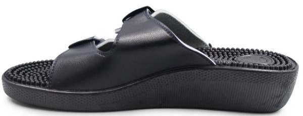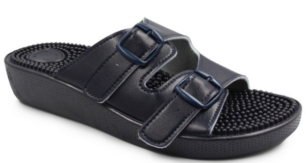 Klapki wyposażone są w kolce, które stymulują punkty akupresury w stopach.