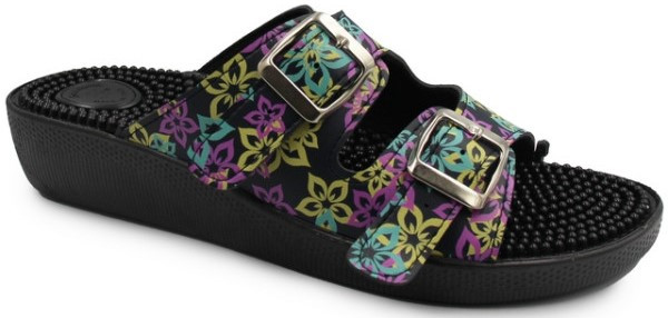 Klapki Damskie Masująca Wkładka Kwiaty 03/C2F Nero/Iris Fin-Flex
