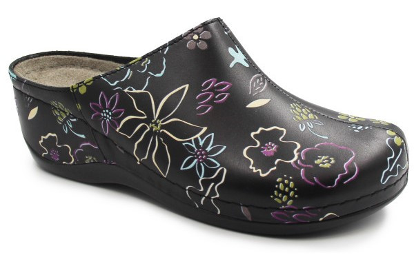 Klapki Damskie Masująca Wkładka Kwiaty 03/C2F Nero/Iris Fin-Flex