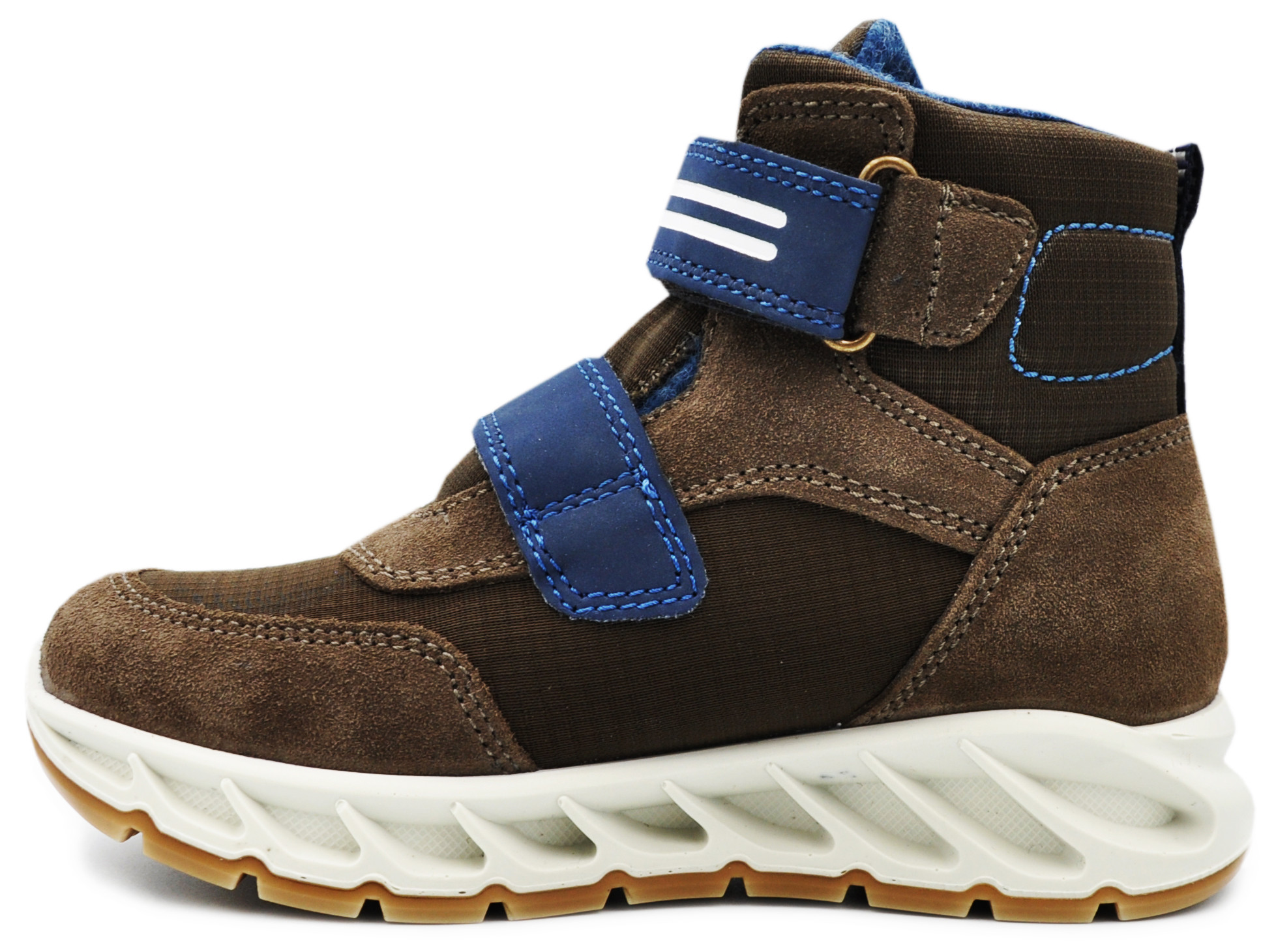 Buty ocieplane chłopięce PRIMIGI w kolorze brązowo-granatowym zostały wykonane z wysokiej jakości miękkiej skóry naturalnej.