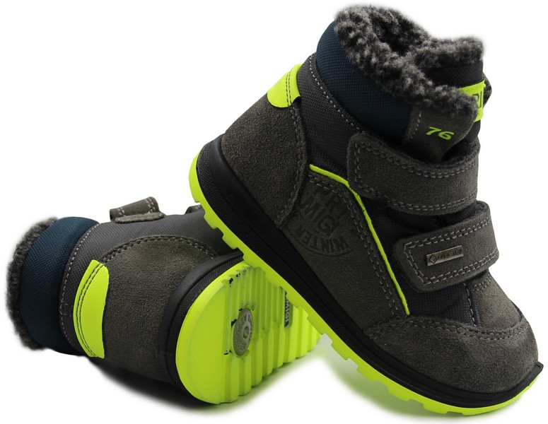 ❄️ Cholewka wykonana jest z wysokiej jakości skóry naturalnej nubukowej oraz materiału tekstylnego, co gwarantuje elastyczność, przewiewność i dopasowuje się do kształtu stopy dziecka
