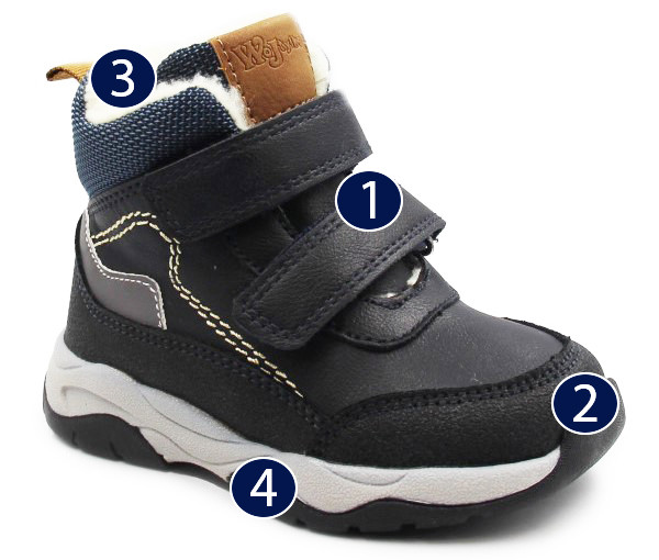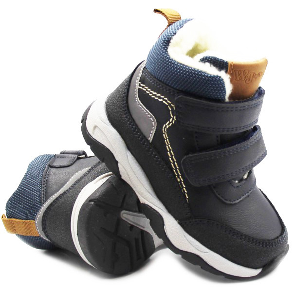 Ocieplane kożuszkiem buty dla chłopca, zapisane za pomocą rzepów które są szybkie oraz praktyczne w zakładaniu, umożliwiając przy tym możliwość indywidualnego dopasowania do stopy.