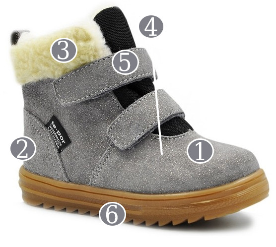 ❄️ Buty marki Mido, zostały wykonane z wysokiej skóry naturalnej welurowej, która dopasowuje się do stopy a przy tym jest przewiewna i elastyczna.