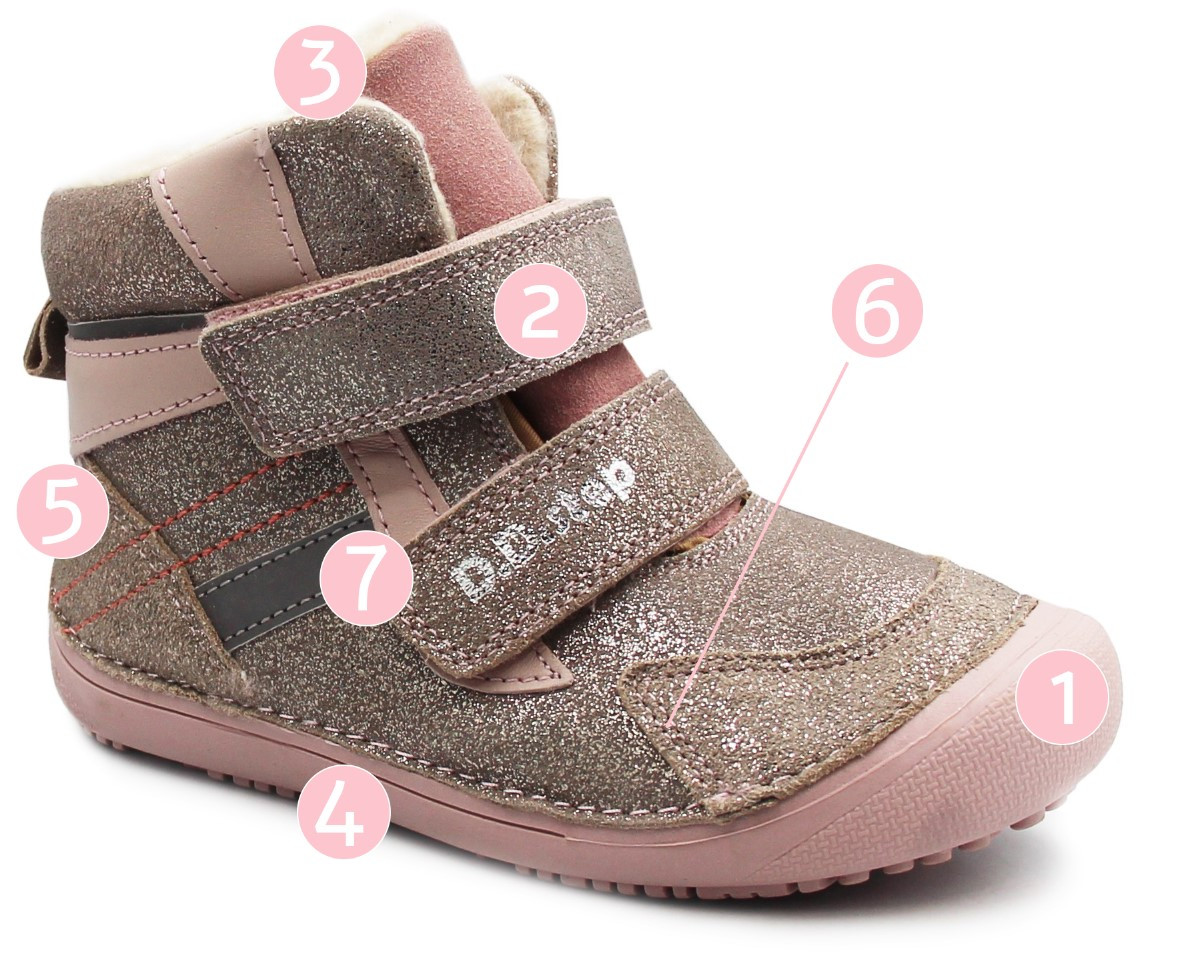 Buty łączące lekkość oraz elastyczność. Przeznaczone dla stóp normalnych oraz szerokich. Czubki obuwia są szerokie, dzięki czemu umożliwiają paluszkom swobodne poruszanie. Wewnątrz stopę dziecka otuli miękkie futerko syntetyczne, które zabezpiecza przed chłodniejszymi temperaturami. Podeszwa Barefoot jest bardzo elastyczna i daje uczucie chodzenia na boso, nie ograniczając ruchomości stopy podczas zginania. Wkładka posiada możliwość wyjęcia.