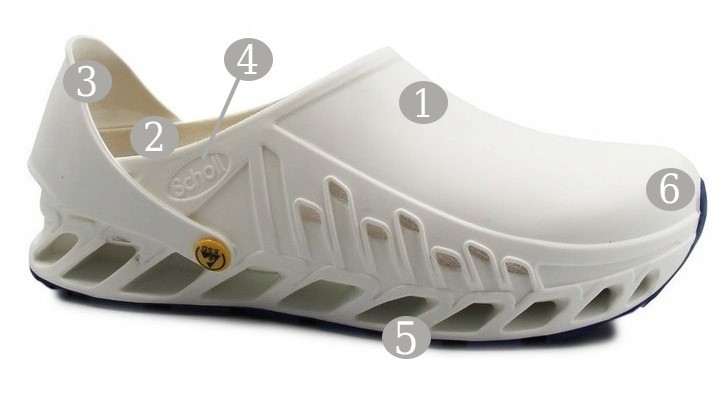1 - buty wykonane są z materiału TPU, który można sterylizować w temperaturze 134 stopni i prać w pralce w temperaturze 90 stopni