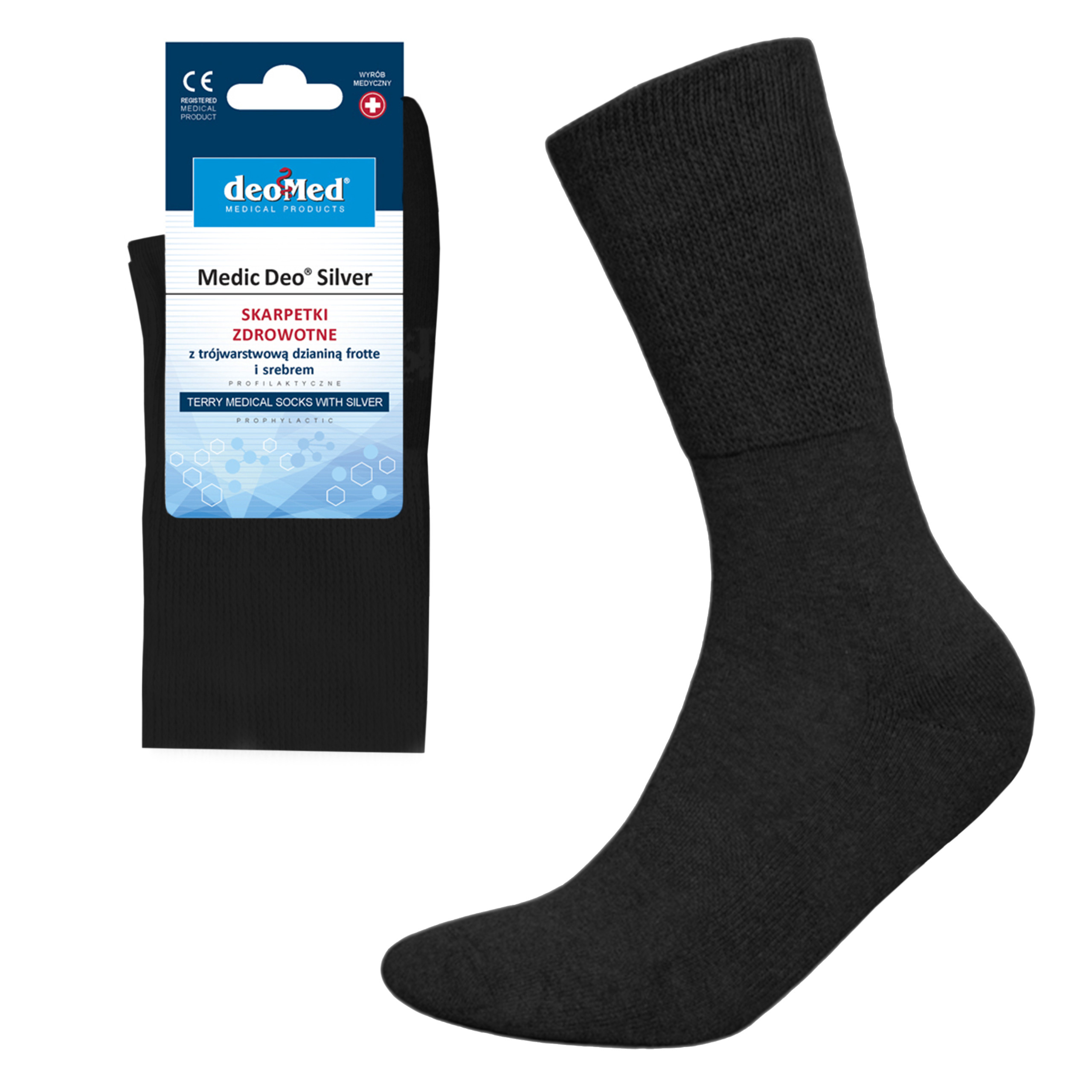 Skarpety dla diabetyków frotte z jonami srebra czarne Medic Deo Silver