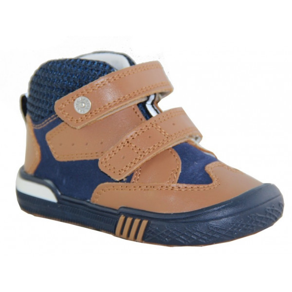 Dziecięce trzewiki firmy Bartek w kolorze brązowo- niebieskim.