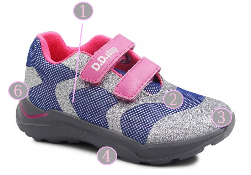 Sportowe buty dla dziewczynki na rzep z brokatem D.D.Step f061-378cm Violet