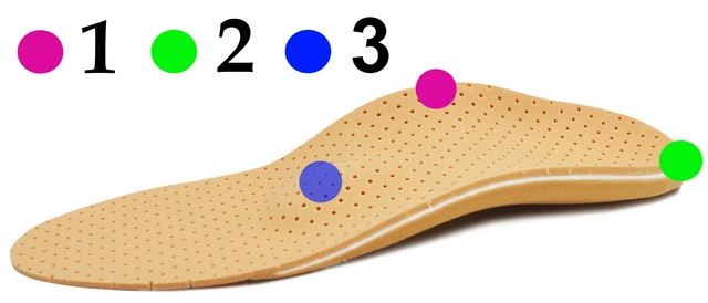 - Statyczne podparcie łuku podłużnego (1): Pomaga w korekcji rzekomego płaskostopia podłużnego.