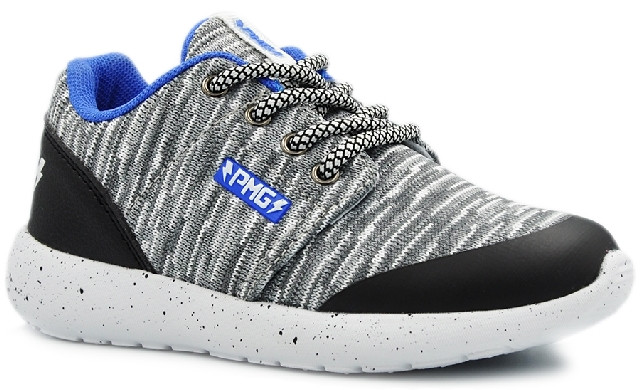 Świetny sportowy model w kolorze szarym w połączeniu z niebieskim i czarnym.