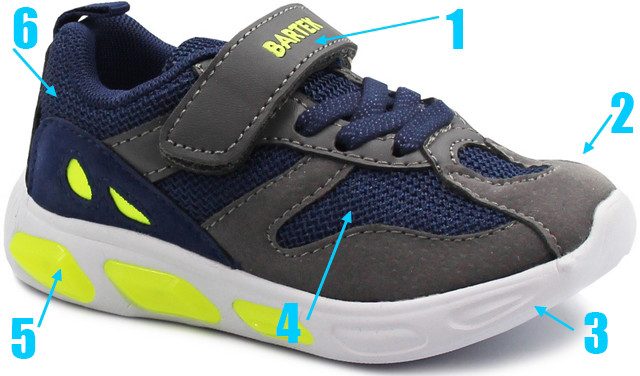 1. Wygodne zapięcie na rzep oraz elastyczne sznurówki, pozwala dopasować but do stopy dziecka