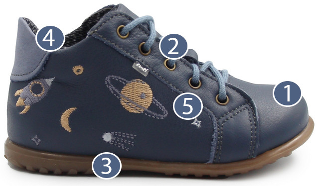 ✅ Usztywnienie tylnej części bucika sięga poniżej kostki, buty muszą pozwalać dziecku siadać na piętach