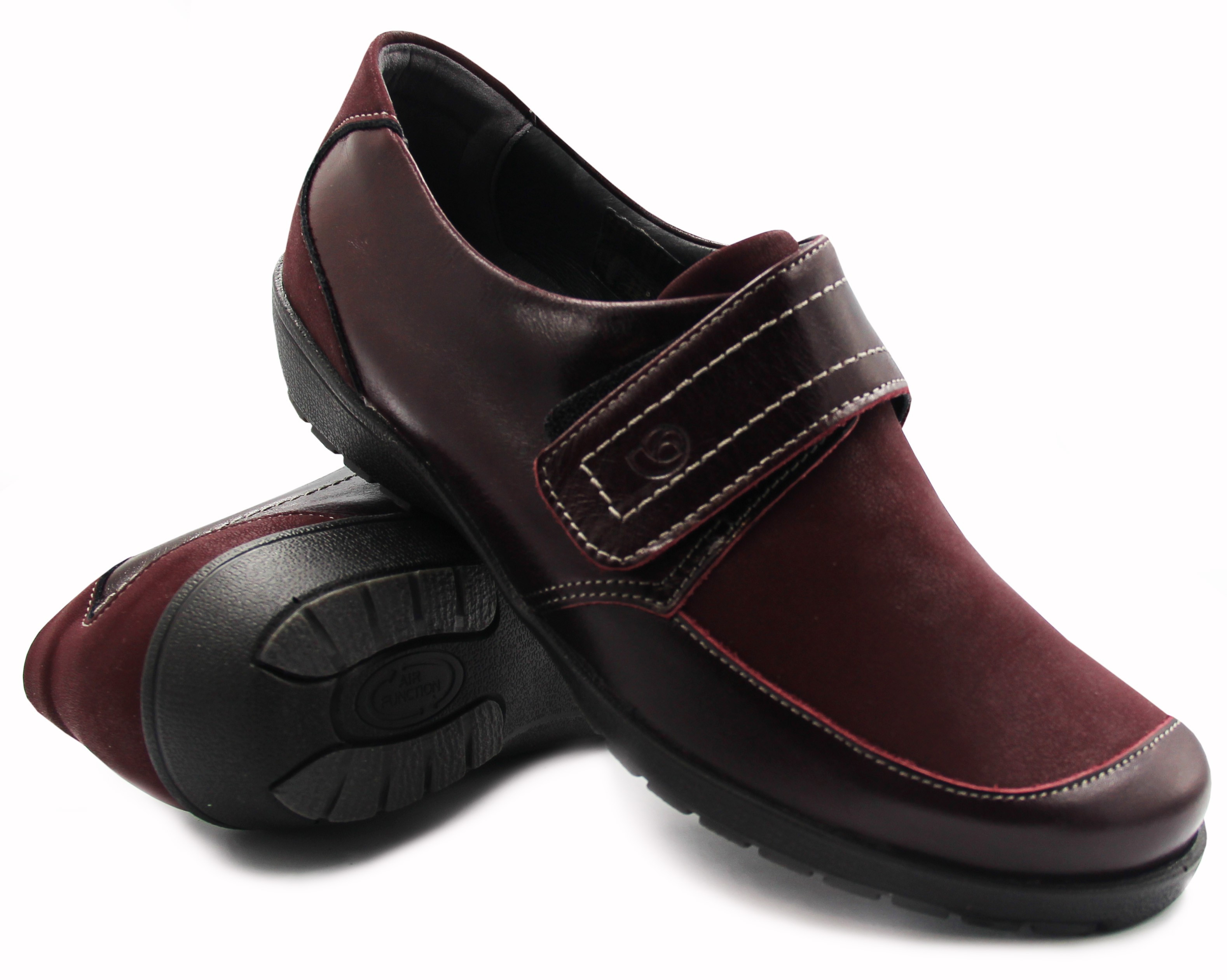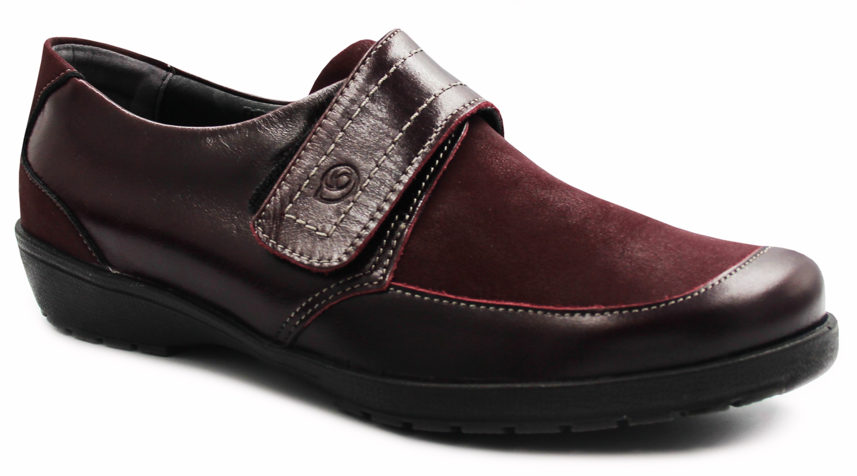 Bardzo komfortowe półbuty marki Suave 942679-41 w kolorze bordowym.