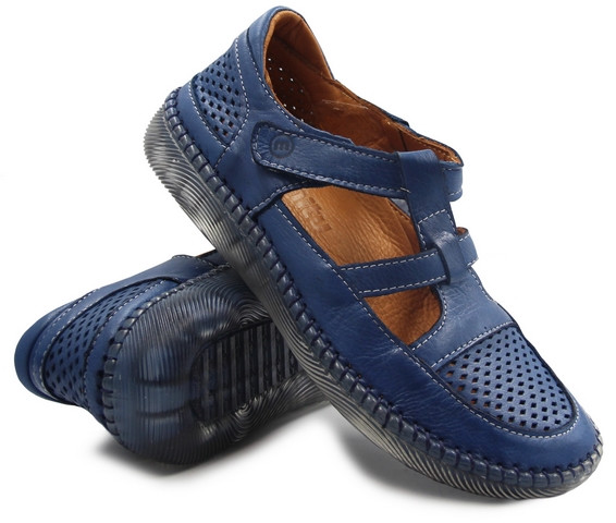 Półbuty Damskie Miękkie Elastyczne Wyciągana Wkładka Manitu 840071-05 blau