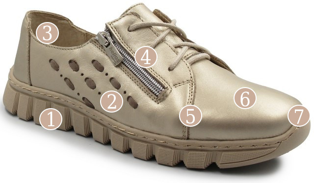 ➡️ Cholewka wykonana z miękkiej, wysokiej jakości skóry naturalnej, która zapewnia odpowiednią cyrkulację powietrza, dzięki czemu stopy nie się nie pocą. Górna część cholewki podbita jest pianką.