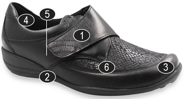Półbuty damskie wykonane z wysokiej jakości skóry i streczu, niemieckiej produkcji. Ich klasyczny wygląd sprawia, że dopasowują się do wiosennych oraz jesiennych stylizacji. Połączone jednocześnie ze sportem, a także elegancją. Wyposażone w dobry system amortyzacji i stabilizacji. Ich tęgość jest poszerzona (K). Miękka, wyjmowana wkładka wpływa na poprawę komfortu podczas chodu.