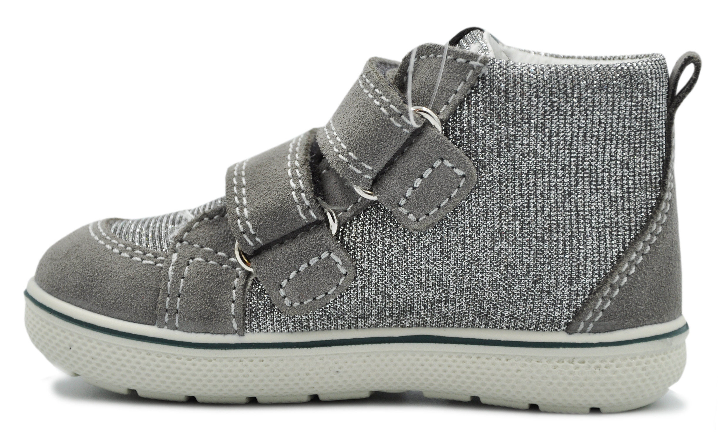 Dziewczęce trzewiki Primigi 2371711 w kolorze szaro - srebrnym z białą podeszwą najlepsze rozwiązanie dla małej aktywnej