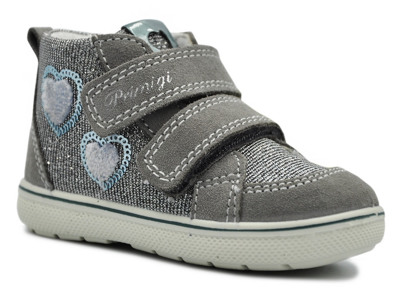 Dziewczęce trzewiki Primigi 2371711 w kolorze szaro - srebrnym z białą podeszwą najlepsze rozwiązanie dla małej aktywnej