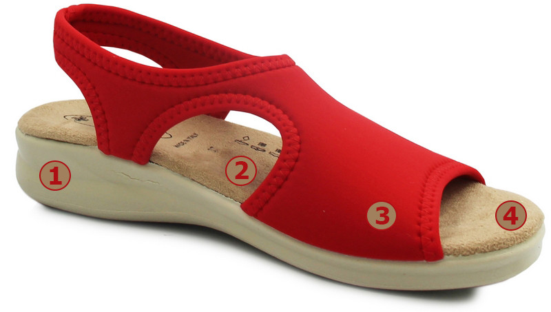 1. Sandały zostały opracowane dla kompleksowej wygody stopy, z miękką podeszwą, która amortyzuje kontakt stopy z podłożem oraz w celu uniknięcia szkodliwego wpływu na stawy. Podeszwa wykonana została z materiałów lekkich, elastycznych i ekologicznych, umożliwia doskonałą przyczepność i stabilność stopy.