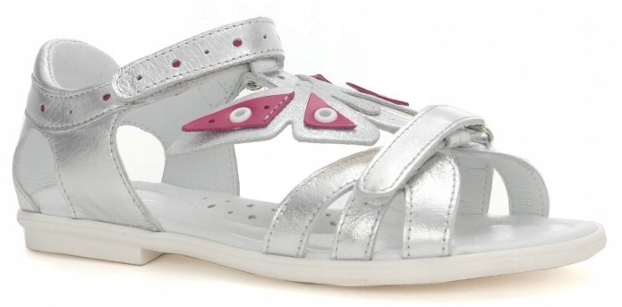 Eleganckie srebrne sandały dla dziewczynki na lato z motylem Bartek w-36209/12d