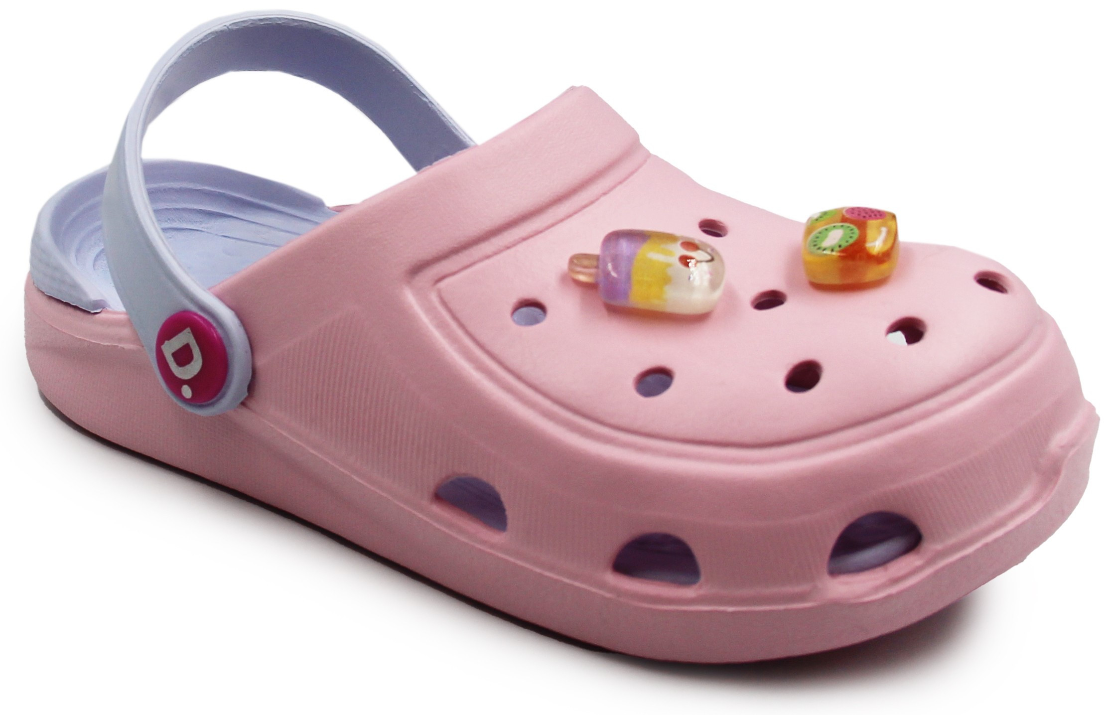 Lekkie, elastyczne klapki dziecięce w różnych wzorach. Posiadają ruchomy pasek, który daje możliwość noszenia obuwia na dwa sposoby jako klapki oraz sandałki. Dzięki wyjmowanej wkładce utrzymanie ich w czystości jest łatwiejsze. Do obuwia dołączone są przypinki. Sprawdzą się podczas wakacji podczas plażowych wyjść, ich zakładanie oraz zdejmowanie jest bardzo łatwe, szybkie i praktyczne.