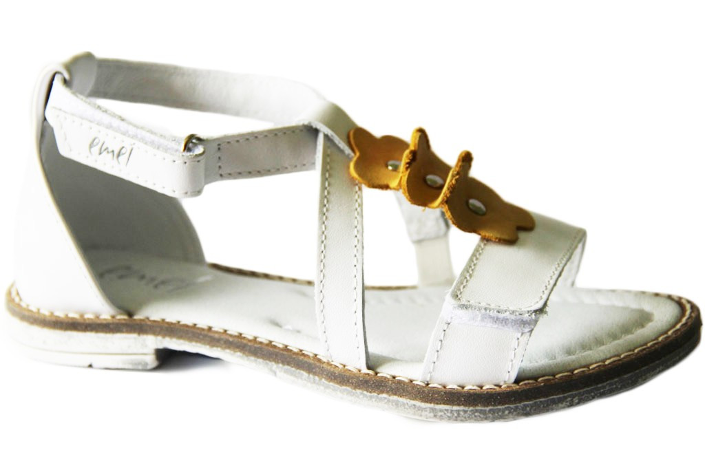 ❤️ Eleganckie dziewczęce sandałki polskiej marki emel, w kolorze białym z ozdobnymi kwiatkami w kolorze żółtym