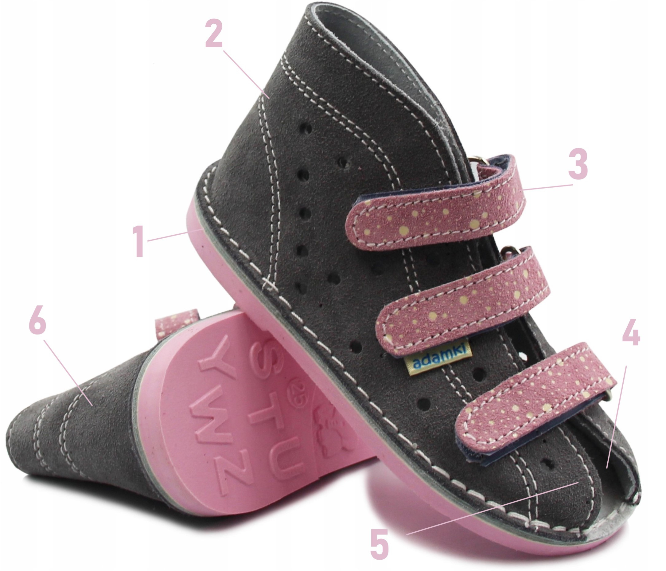 ⭐️ Dzięki regulowanemu zapięciu na rzepy możemy dopasować buciki do różnych kształtów stop