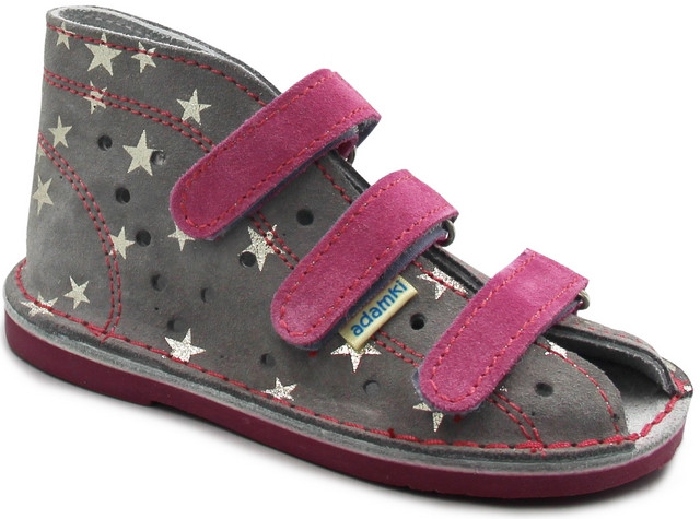 Buty kapcie korekcyjne dziewczynka Adamki 01 2N popiel gwiazdki fuksja
