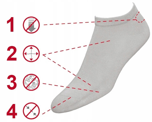 - Specjalna konstrukcja cholewki i niewielka domieszka lycry w całej skarpetce powodują idealne, bezuciskowe przyleganie do nóg i maksymalną elastyczność