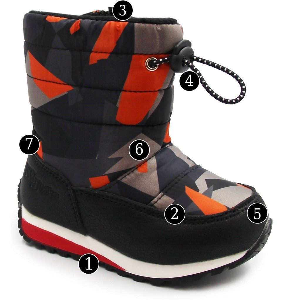 ✔️ Ocieplane śniegowce dla chłopca z modnym wzorem. Wykonane ze skóry ekologicznej oraz materiału tekstylnego. W środku pokryte są ocieplanym futerkiem, które dostarcza ciepło podczas zimowych zabaw na śniegu.