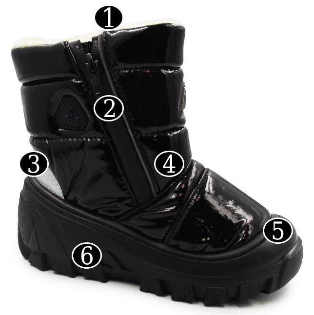 Śniegowce Bartek 14625005 to wysokie buty zimowe dla dziewczynek. Wykonane są z zaimpregnowanego materiału tekstylnego imitującego skórę lakierowaną. Dolna część cholewki jest wykonana z kauczuku termoplastycznego (TR), który jest odporny na ścieranie i zapewnia dobrą przyczepność na śniegu i lodzie.