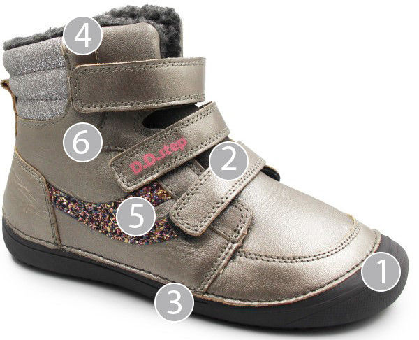 Wyjmowana wkładka ocieplona futerkiem. Jest komfortowa oraz bardzo miękka podczas noszenia. Futerko ociepla stopę dziecka i chroni przed chłodniejszymi temperaturami.