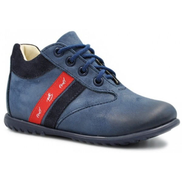 Trzewiki Emel e 2045-29 to idealne buty dla dzieci, które zaczynają swoją przygodę z chodzeniem. Charakteryzują się granatowym kolorem, który przypadnie do gustu każdemu chłopcu i sprawdzi się zarówno na codzienne wyjścia, jak i odświętne okazje.