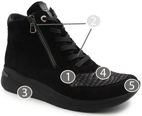 2. Zapięcie za pomocą zamka oraz sznurowadła. Umożliwiają sposób indywidualnego dopasowania obuwia do stopy.