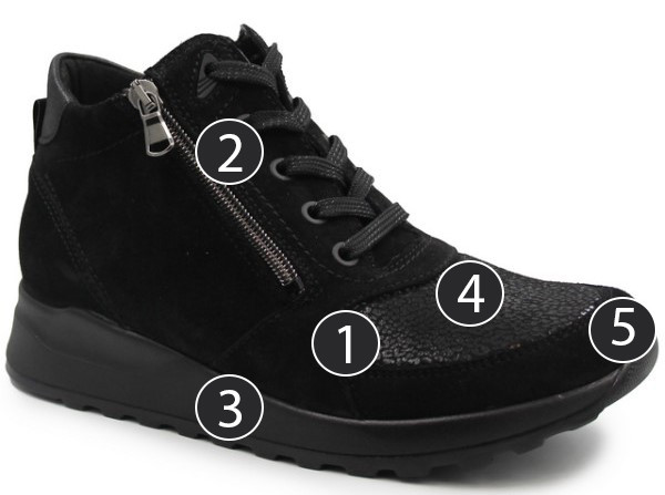 2. Zapięcie za pomocą zamka oraz sznurowadła. Umożliwiają sposób indywidualnego dopasowania obuwia do stopy.