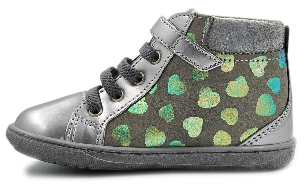 ✨ Buciki w srebrnym kolorze z dodatkiem metalicznych, kolorowych serduszek