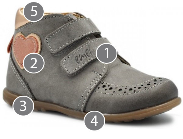 ✅ Usztywnienie tylnej części bucika sięga poniżej kostki, buty muszą pozwalać dziecku siadać na piętach