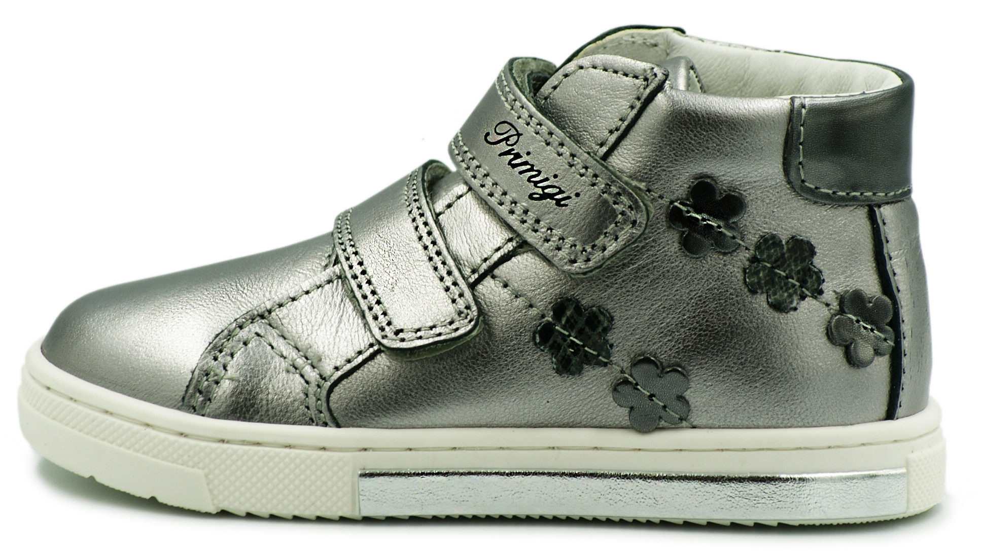 Buty sportowe dziewczęce PRIMIGI w kolorze metalicznym srebrnym zostały wykonane z wysokiej jakości miękkiej skóry naturalnej.