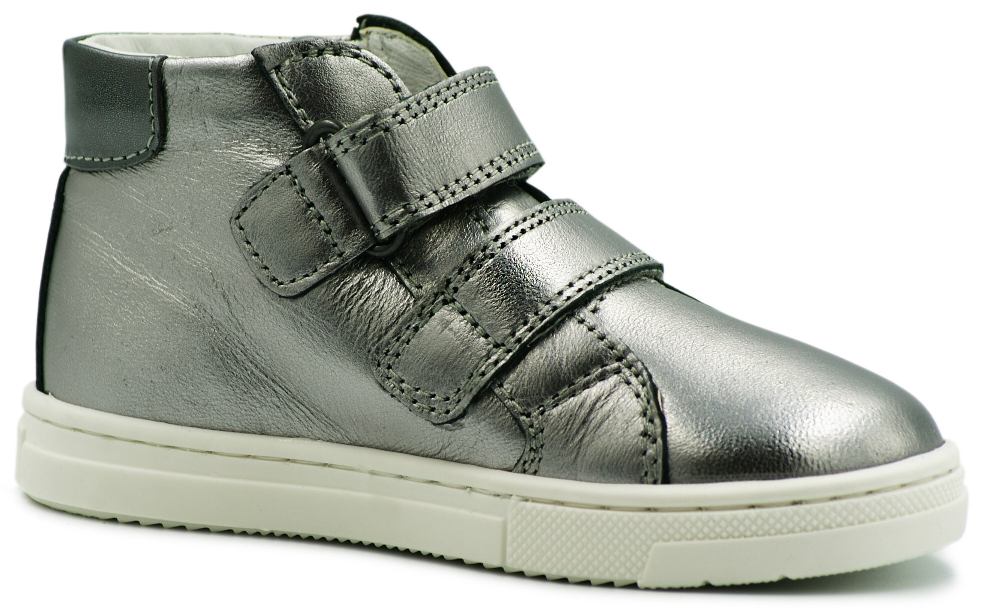 Buty sportowe dziewczęce PRIMIGI w kolorze metalicznym srebrnym zostały wykonane z wysokiej jakości miękkiej skóry naturalnej.
