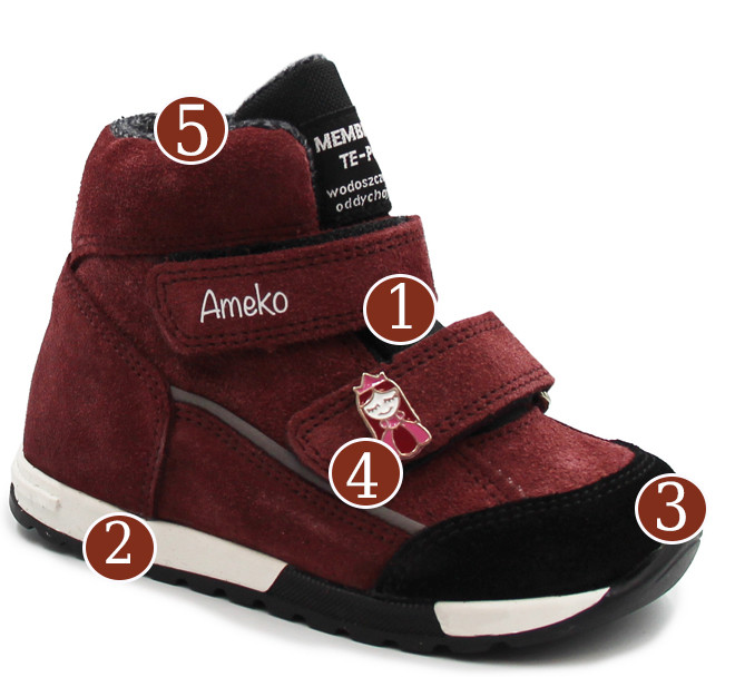 Membrana to specjalna, wodoodporny i jednocześnie oddychający materiał która skutecznie chroni stopę dziecka przed wilgocią, jednocześnie umożliwiając jej swobodne oddychanie. Delikatna ocieplina zapewnia odpowiednią izolację termiczną, chroniąc stopę przed chłodniejszymi temperaturami.