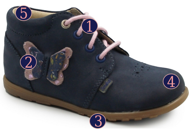 Wykonana jest z elastycznego materiału, który ułatwia stawianie pierwszych kroków. Punkty są ułożone w kształt trójkąta (niebieskie strefy) te miejsca są znacznie bardziej miękkie, wpływają na prawidłowe ustawienie stopy.