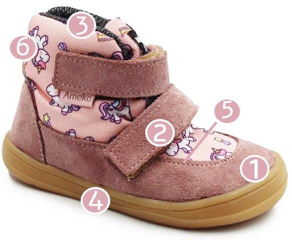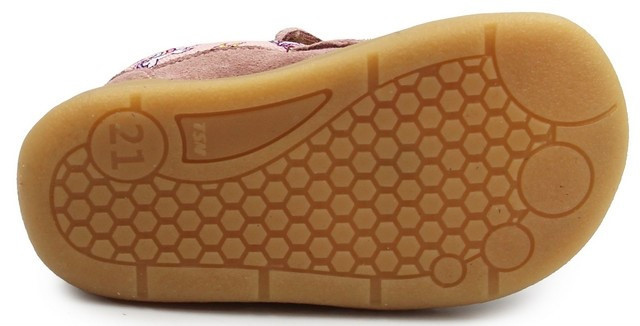 Buty dla dziewczynki na seson jesieny oraz początek zimy. Posiadają Membranę, której zadaniem jest utrzymanie stóp dziecka w suchości. Wnętrze otula stopę miękkim materiałem sweterkowym. Zapinane za pomocą praktycznych rzepów. Podeszwa jest elastyczna i daje uczucie "bosej stopy", nie ogranicza ruchomości syopy i pozwala swobodnie się poruszać.
